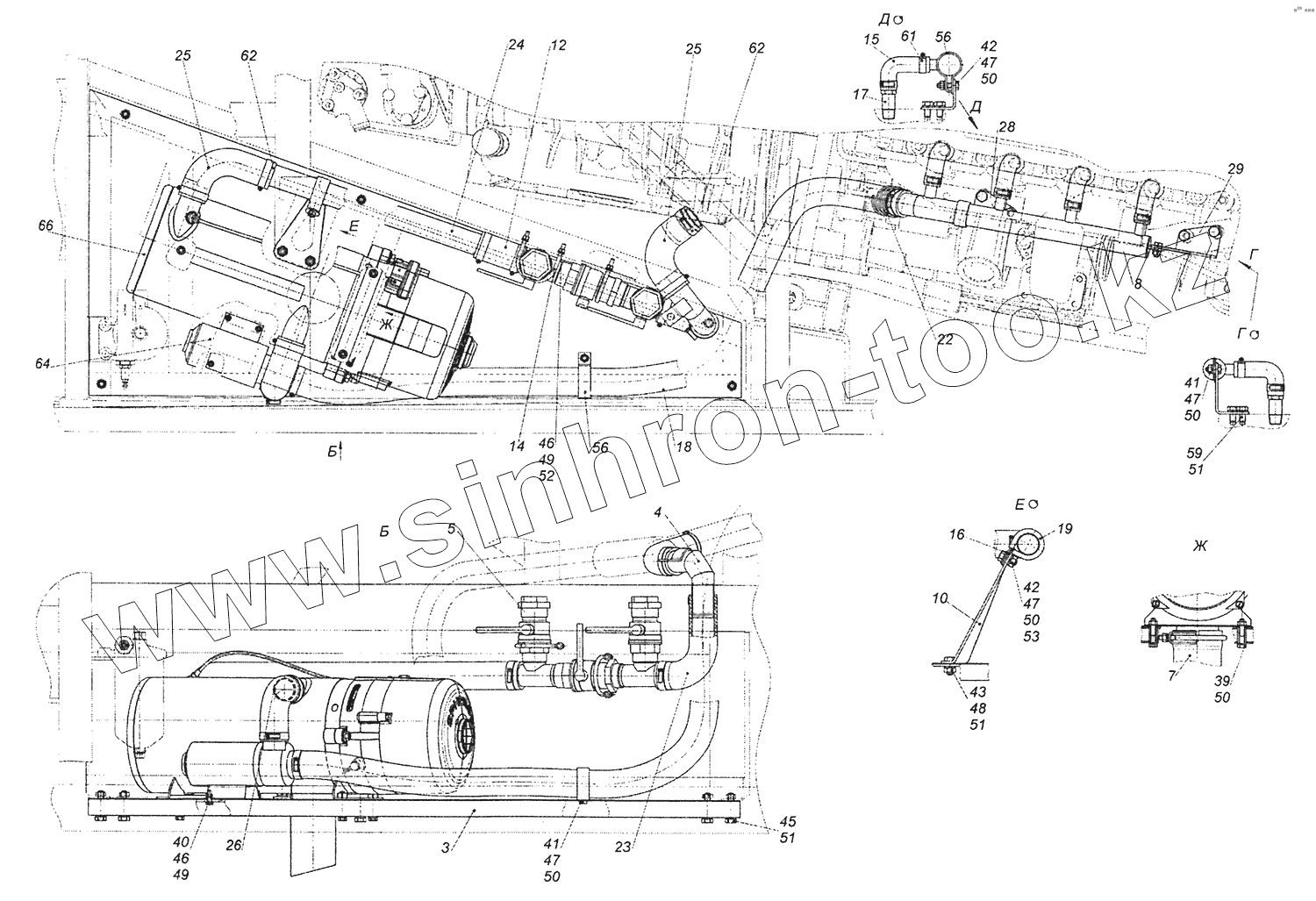Каталог запасных частей к технике: Камский автозавод Шасси 52974. 52974-8106505-10 Установка подогревателя