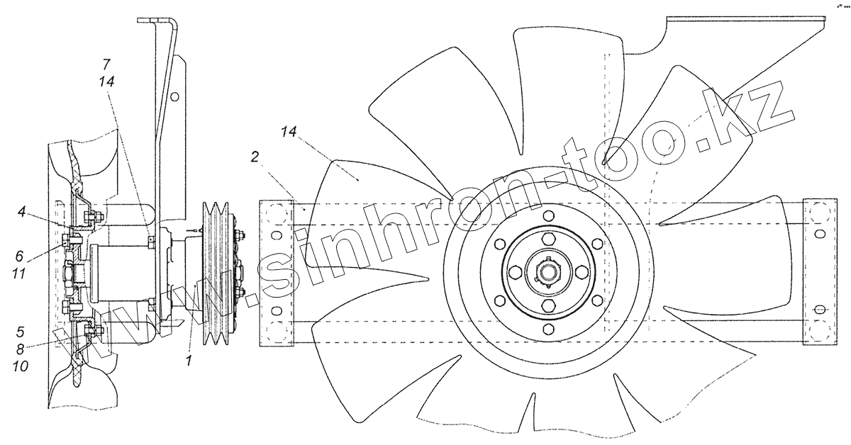 Каталог запасных частей к технике: Камский автозавод Шасси 5297. 5297-1308005-72 Установка вентилятора