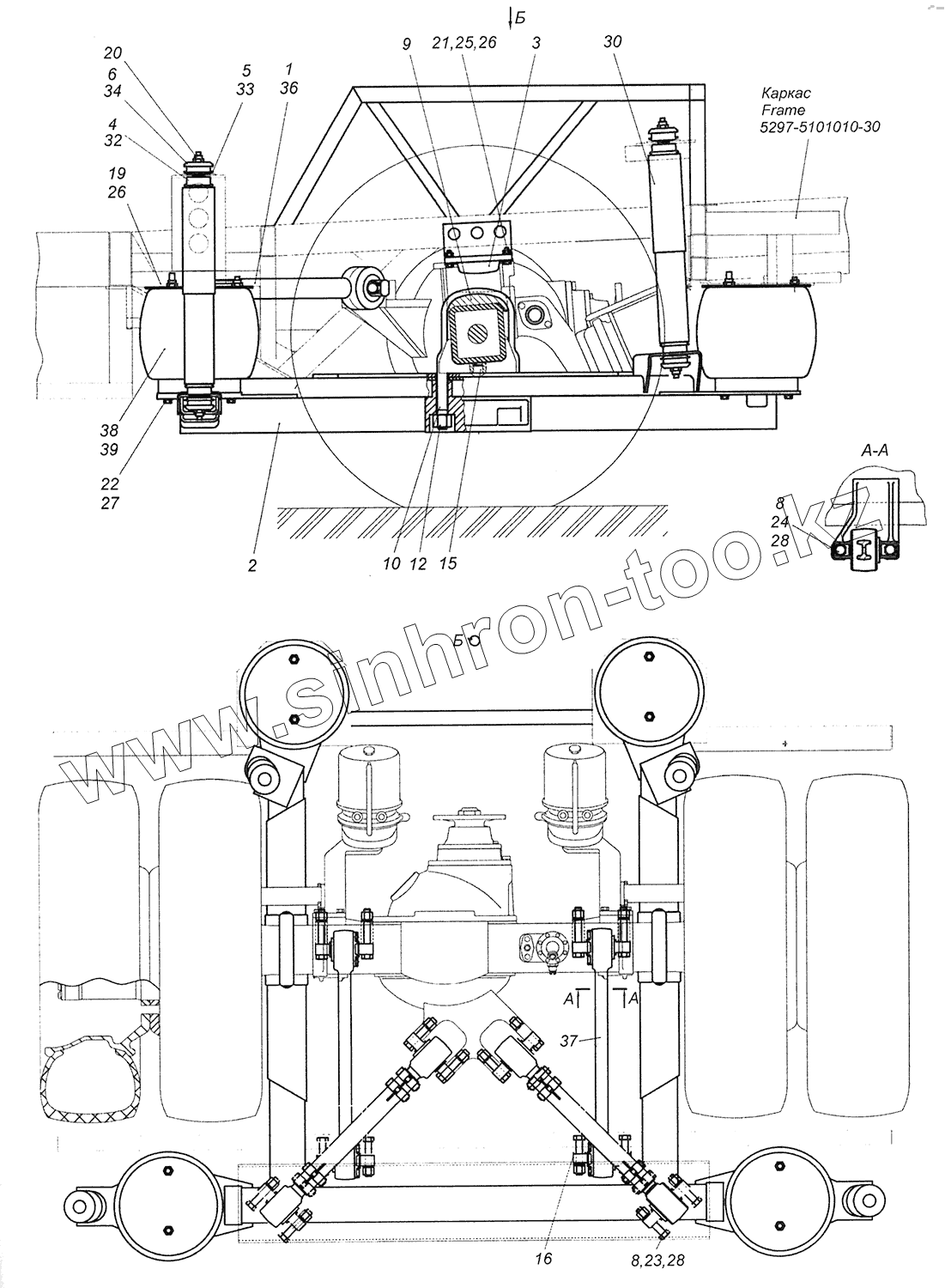 Каталог запасных частей к технике: Камский автозавод Шасси 5297. 5297-2900002 Установка задней подвески