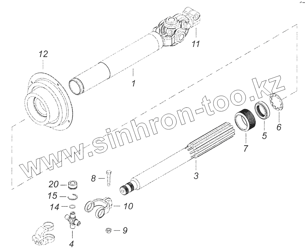 Каталог запасных частей к технике: Камский автозавод Шасси 5297. 5297-3422010-30 Вал карданный рулевого управления