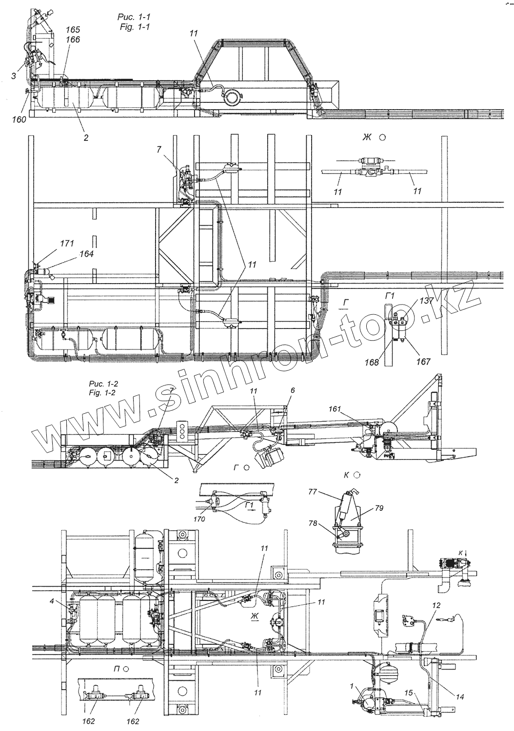 Каталог запасных частей к технике: Камский автозавод Шасси 5297. 5297-3500006-93 Установка пневмопривода тормозов