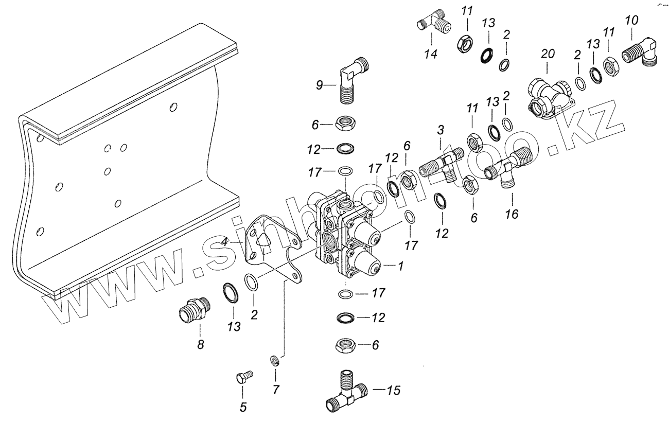 Каталог запасных частей к технике: Камский автозавод Шасси 5297. 5297-3515005 Клапан четырехконтурный с соединительной арматурой
