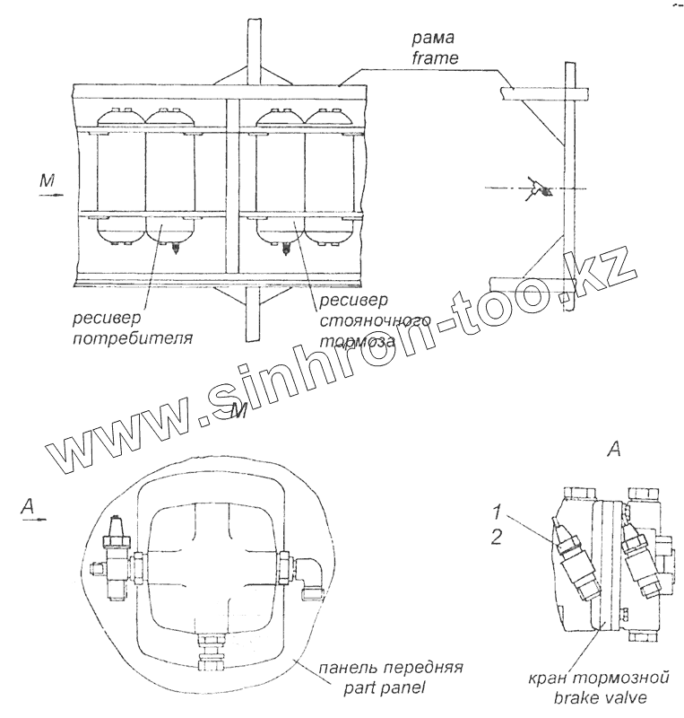 Каталог запасных частей к технике: Камский автозавод Шасси 5297. 5297-3830002 Установка датчиков аварийного давления воздуха