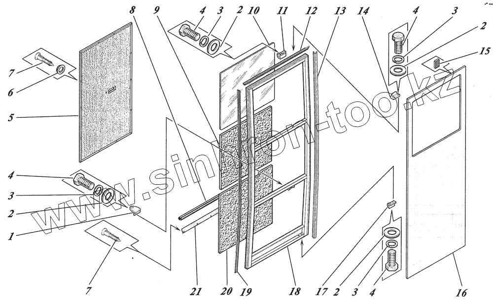 Каталог запасных частей к технике: КАВЗ-4238 "Аврора". Дверь задняя 4230-6100010-20