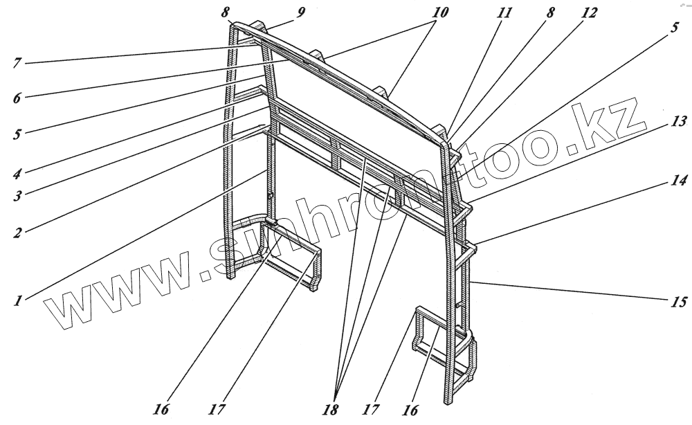Каталог запасных частей к технике: КАВЗ-4238 "Аврора". Каркас задка 4238-5601010