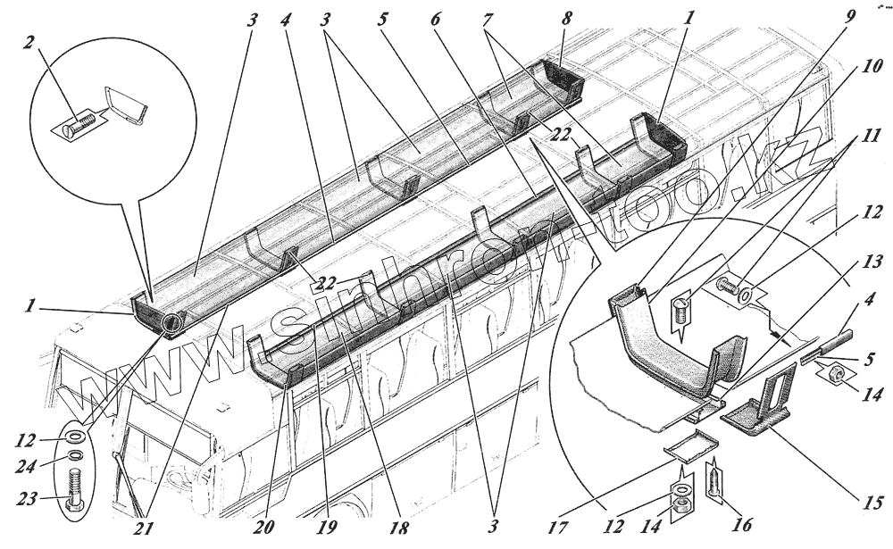 Каталог запасных частей к технике: КАВЗ-4238 "Аврора". Установка багажных полок 4238-5707002