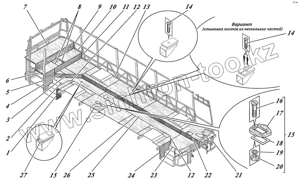 Каталог запасных частей к технике: КАВЗ-4238 "Аврора". Установка настила пола 4238-5102002