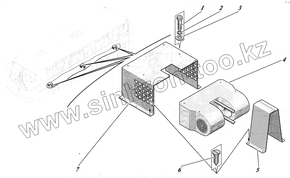 Каталог запасных частей к технике: КАВЗ-4238 "Аврора". Установка отопителей салона 4238-8100006