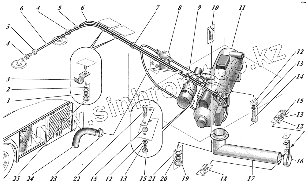 Каталог запасных частей к технике: КАВЗ-4238 "Аврора". Установка подогревателя 4238-8106002