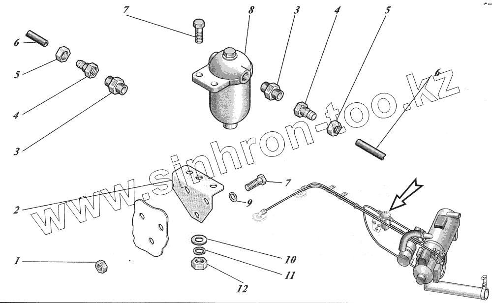 Каталог запасных частей к технике: КАВЗ-4238 "Аврора". Установка подогревателя 4238-8106002
