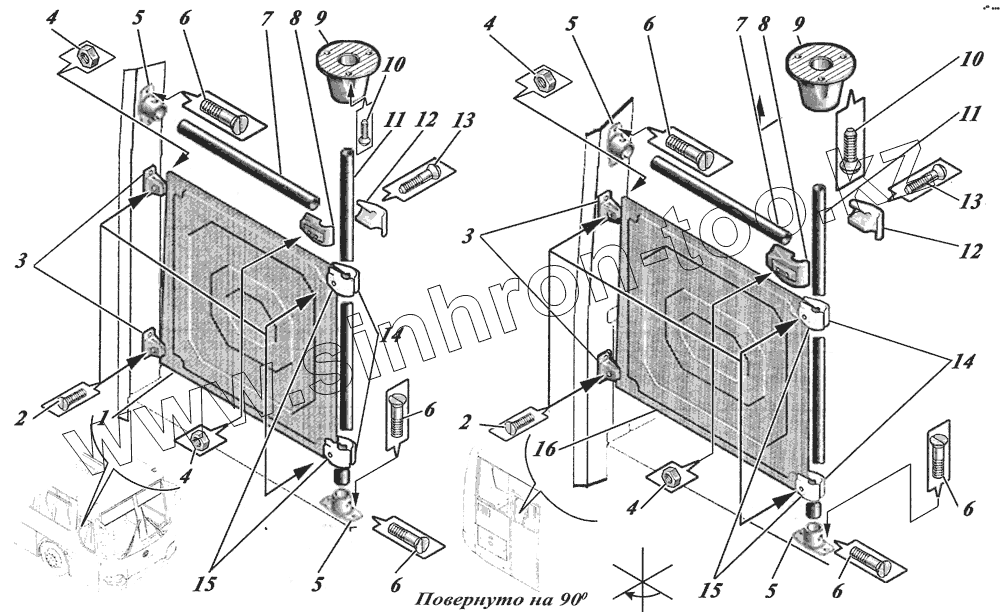 Установка кронштейнов в моторном отсеке 4238-5000060, 4238-01-5000060