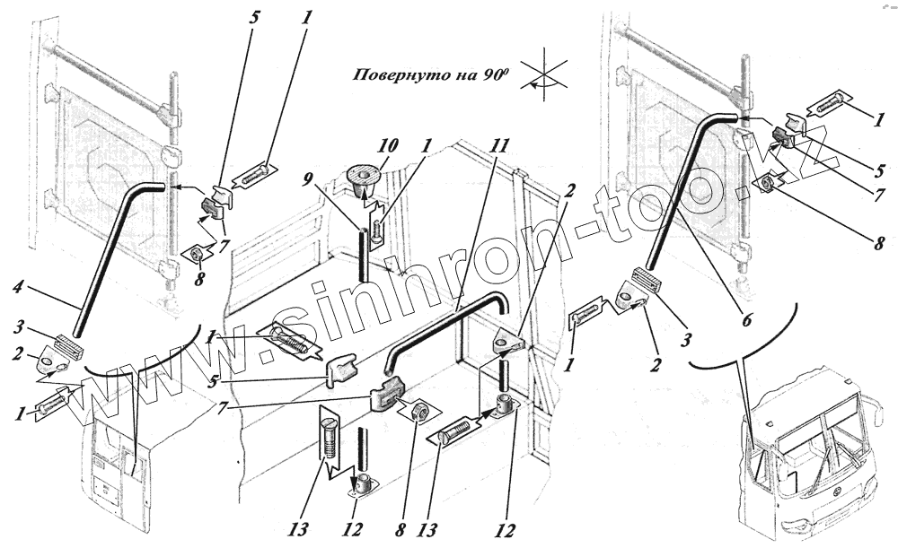 Каталог запасных частей к технике: КАВЗ-4238 "Аврора". Установка поручней 4238-8200002