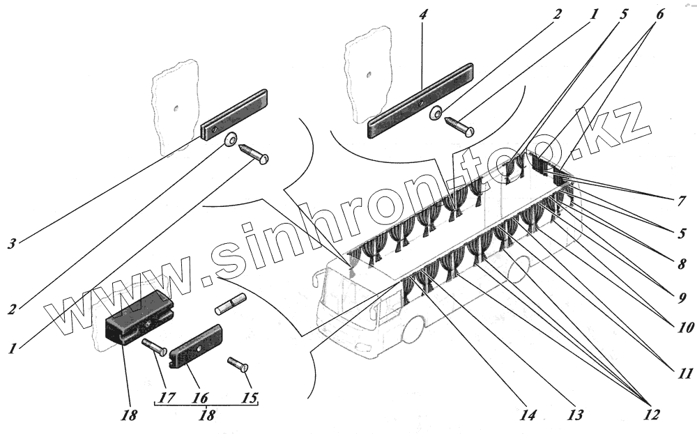 Каталог запасных частей к технике: КАВЗ-4238 "Аврора". Установка шторок 4238-8205004