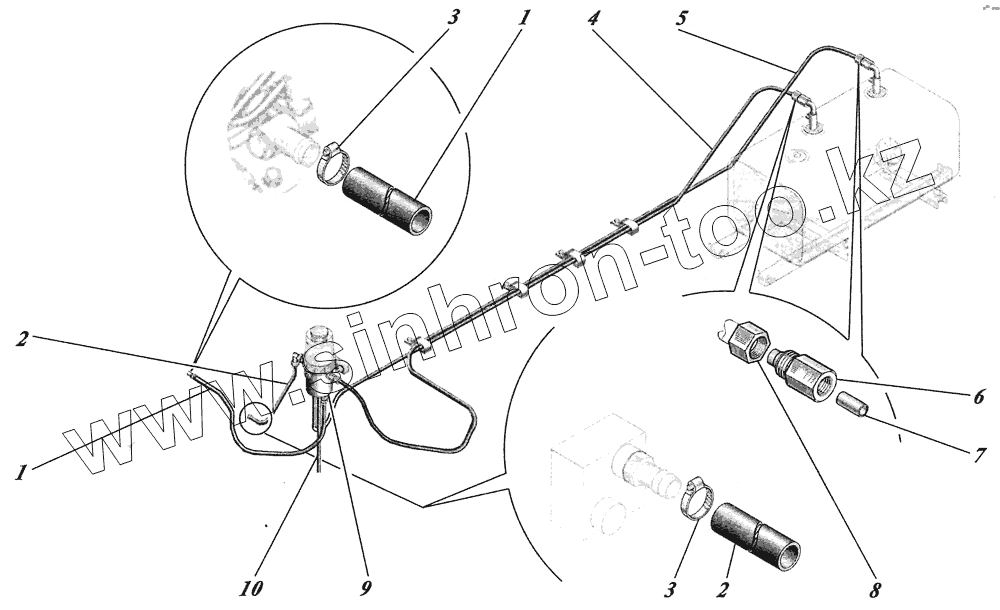 Каталог запасных частей к технике: КАВЗ-4238 "Аврора". Установка топливных трубопроводов 4238-1104002
