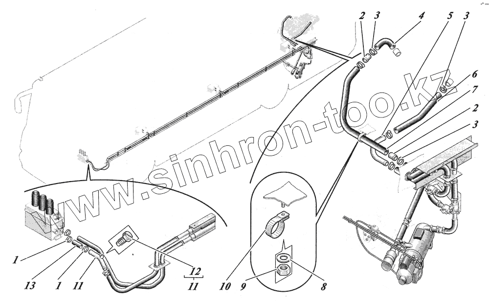 Каталог запасных частей к технике: КАВЗ-4238 "Аврора". Установка трубопроводов отопления 4238-8106004
