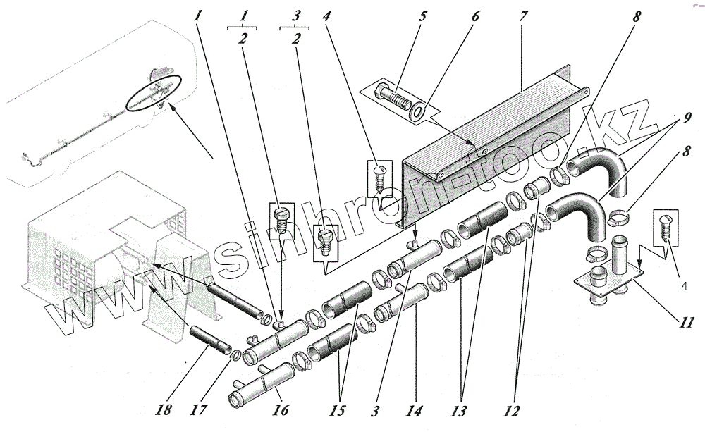 Каталог запасных частей к технике: КАВЗ-4238 "Аврора". Установка трубопроводов отопления 4238-8106004