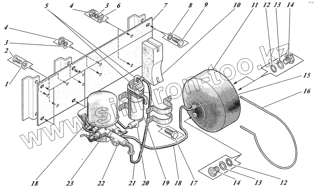 Каталог запасных частей к технике: КАВЗ-4238 "Аврора". Установка воздухоосушителя 4230-3511010-10