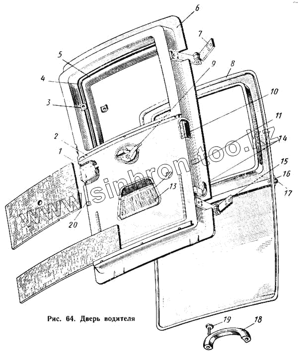Каталог запасных частей к технике: КАВЗ-685. Дверь водителя
