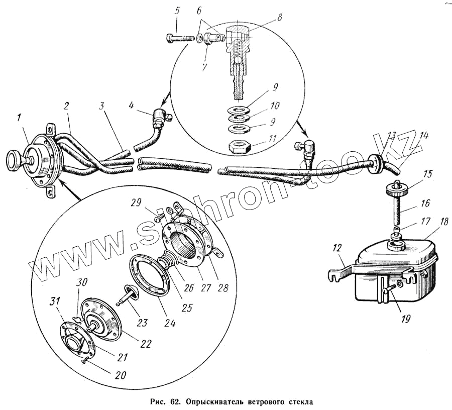 Каталог запасных частей к технике: КАВЗ-685. Опрыскиватель ветрового стекла