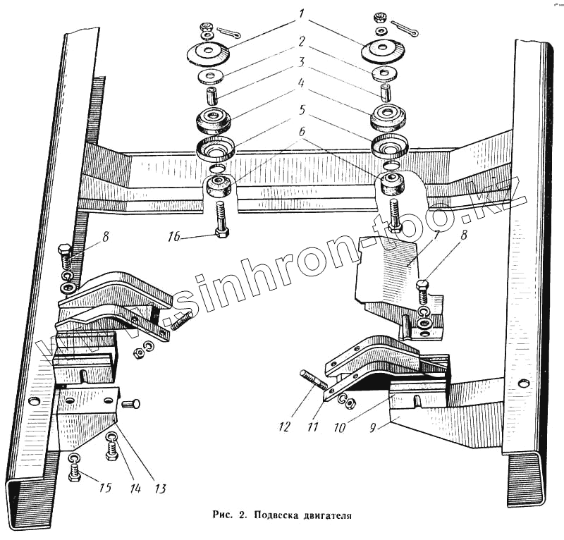 Каталог запасных частей к технике: КАВЗ-685. Подвеска двигателя