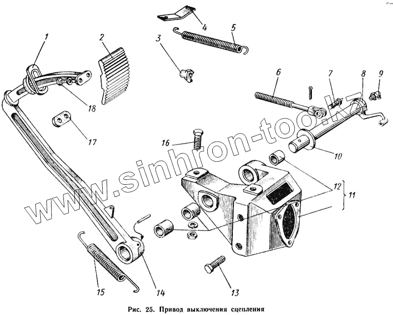 Каталог запасных частей к технике: КАВЗ-685. Привод выключения сцепления