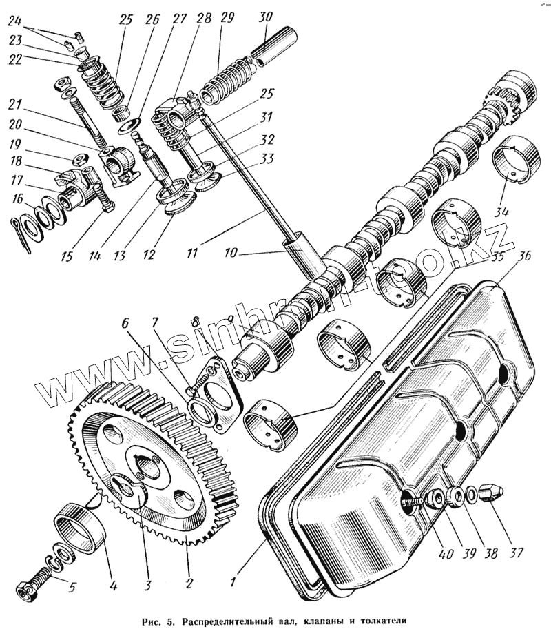 Каталог запасных частей к технике: КАВЗ-685. Распределительный вал, клапаны и толкатели