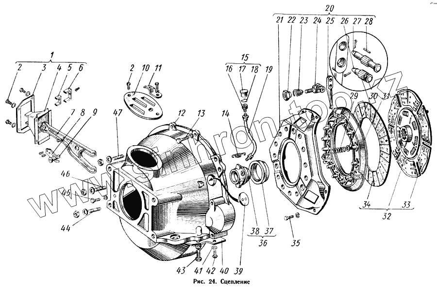 Каталог запасных частей к технике: КАВЗ-685. Сцепление