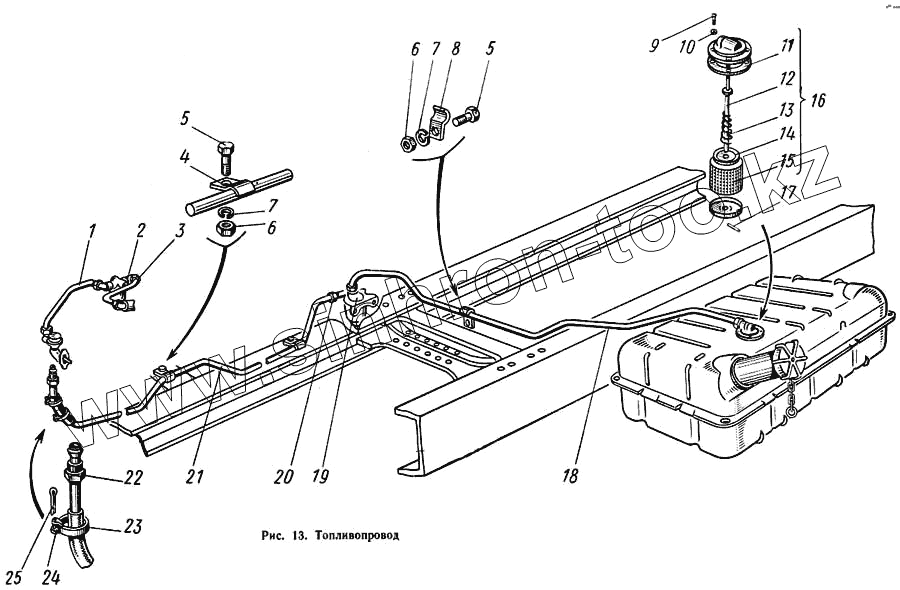 Каталог запасных частей к технике: КАВЗ-685. Топливопровод