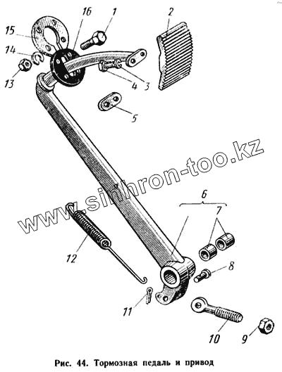 Каталог запасных частей к технике: КАВЗ-685. Тормозная педаль и привод