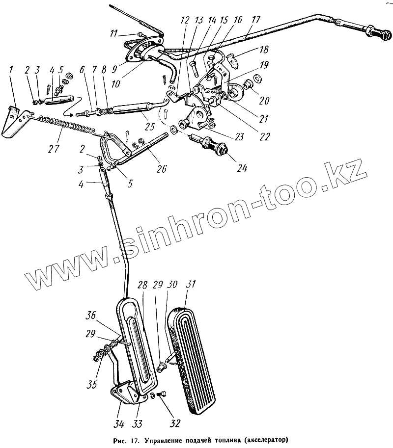 Каталог запасных частей к технике: КАВЗ-685. Управление подачей топлива (акселератор)