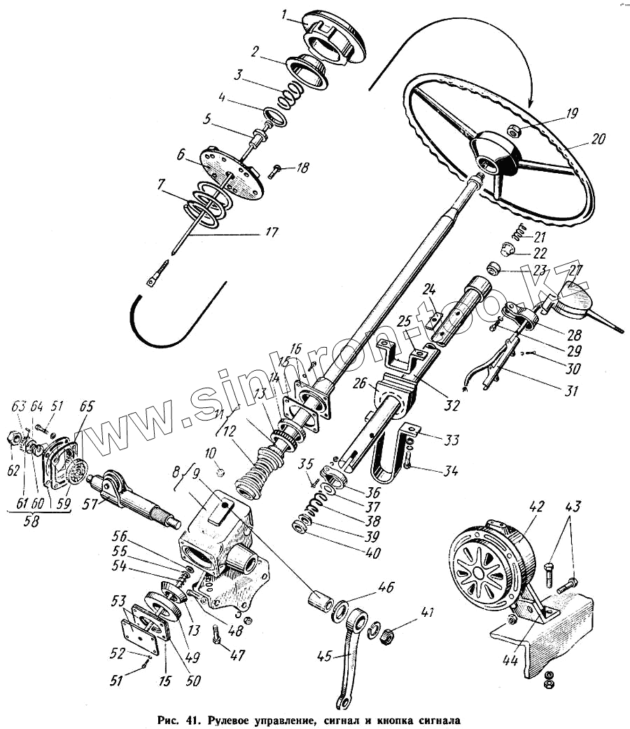 Каталог запасных частей к технике: КАВЗ-685. Управление рулевое, сигнал и кнопка сигнала