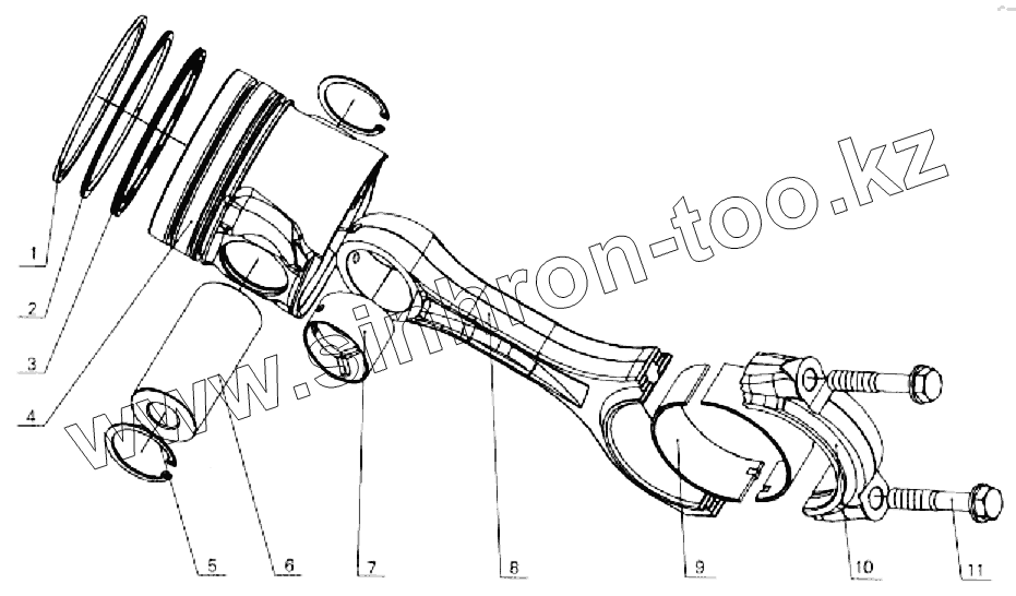 Каталог запасных частей к технике: King Long Автобус XMQ-6127. Assembly, piston & connecting rod