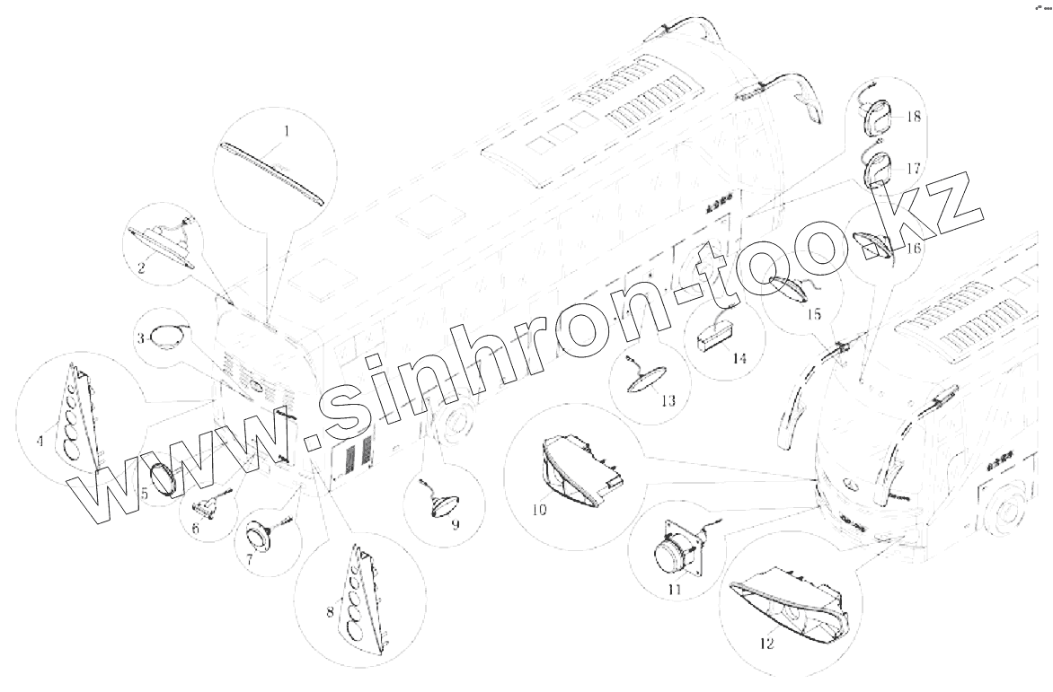 Каталог запасных частей к технике: King Long Автобус XMQ-6127. Electrical equipment (I)- Lamp