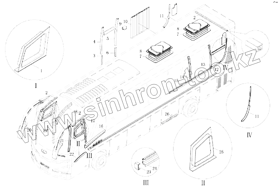 Каталог запасных частей к технике: King Long Автобус XMQ-6127. Inner trim (II)