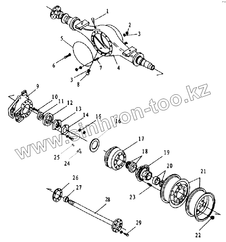 Каталог запасных частей к технике: King Long Автобус XMQ-6127. Rear axle(Air suspension)