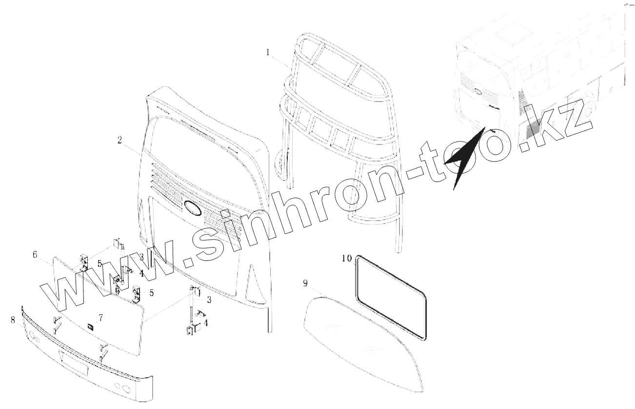 Каталог запасных частей к технике: King Long Автобус XMQ-6127. Rear wall