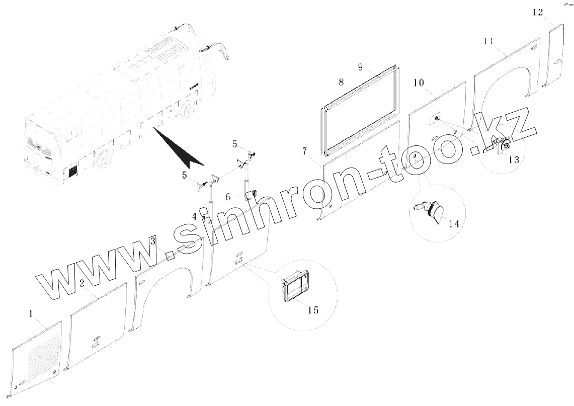 Каталог запасных частей к технике: King Long Автобус XMQ-6127. Right side bin gate assy