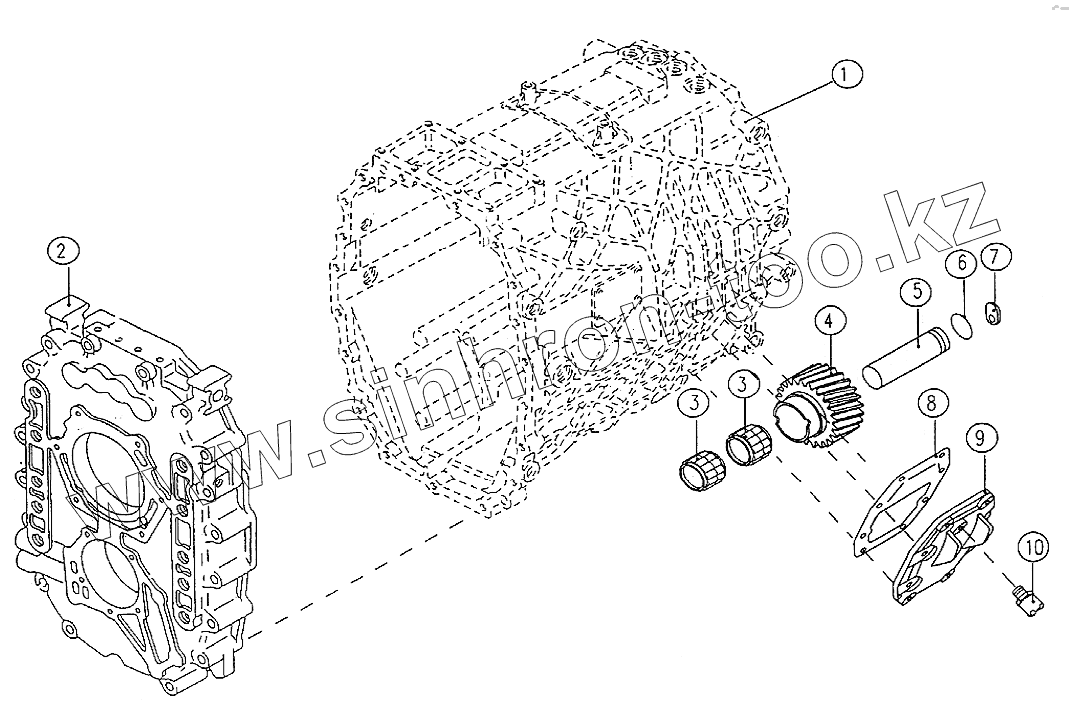 Каталог запасных частей к технике: King Long Автобус XMQ-6127. Transmission housing and reverse shaft