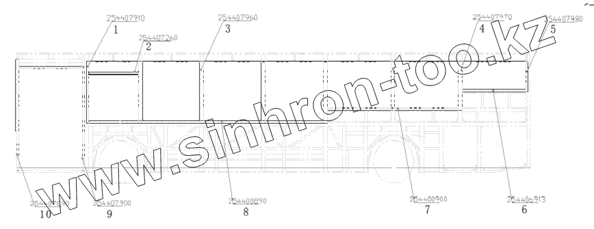 Каталог запасных частей к технике: King Long Автобус XMQ-6127J. LEFT SIDE CLAD COLUMN