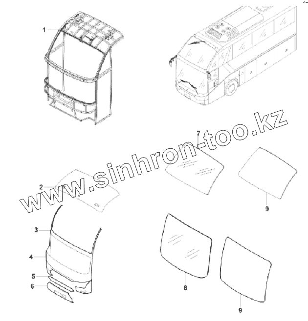 Каталог запасных частей к технике: King Long Автобус XMQ-6129Y5. FRONT WALL