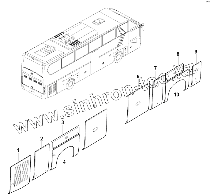Каталог запасных частей к технике: King Long Автобус XMQ-6129Y5. RIGHT SIDE BIN GATE