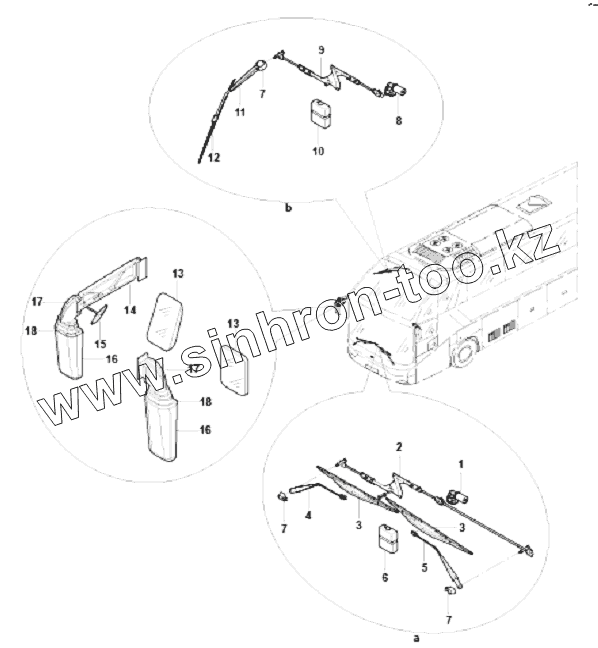 Каталог запасных частей к технике: King Long Автобус XMQ-6129Y5. WIPER AND REARVIEW MIRROR