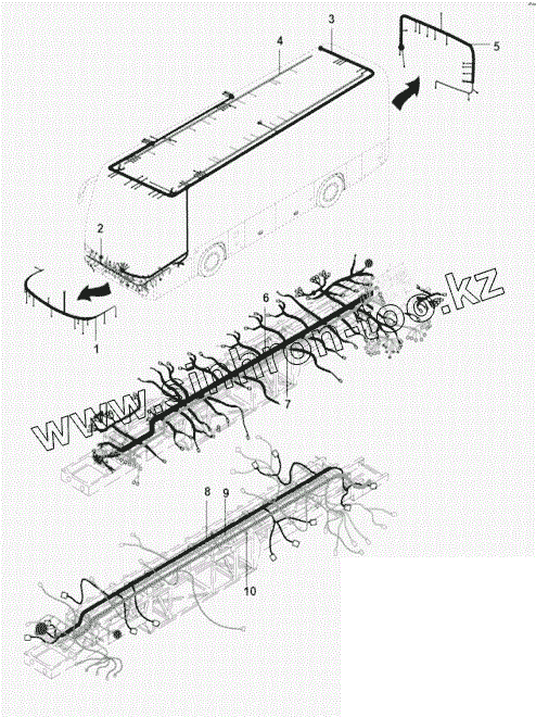 Каталог запасных частей к технике: King Long Автобус XMQ-6129Y5. WIRING HARNESS, ELECTRICAL PARTS
