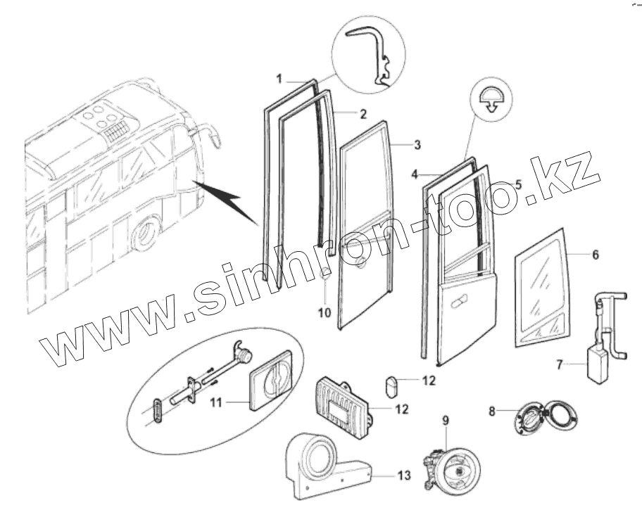 Каталог запасных частей к технике: King Long Автобус XMQ-6129Y. FRONT PASSENGER DOOR