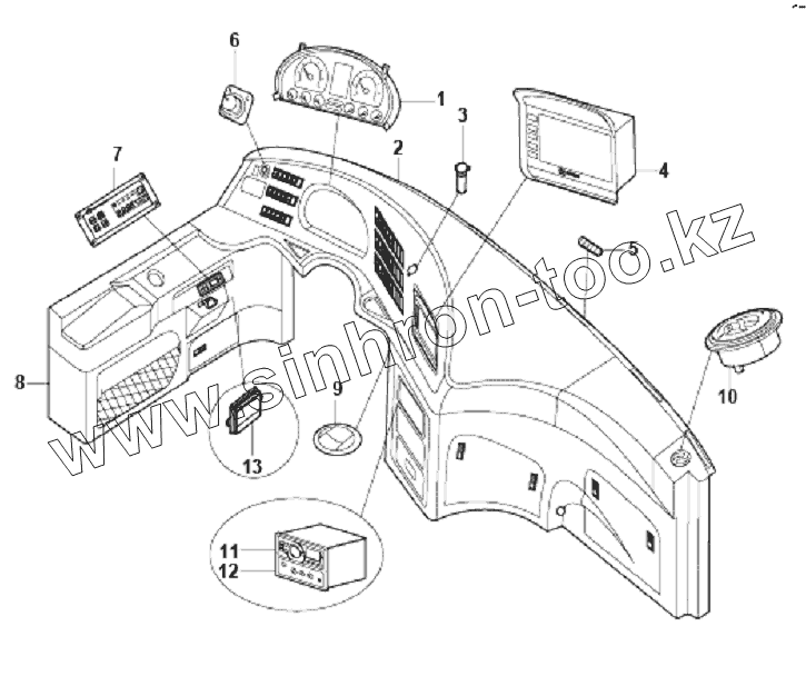 Каталог запасных частей к технике: King Long Автобус XMQ-6129Y. INSTRUMENT DESK