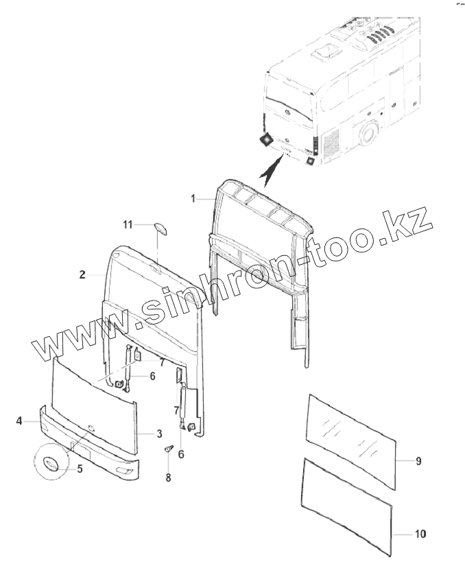 Каталог запасных частей к технике: King Long Автобус XMQ-6129Y. REAR WALL