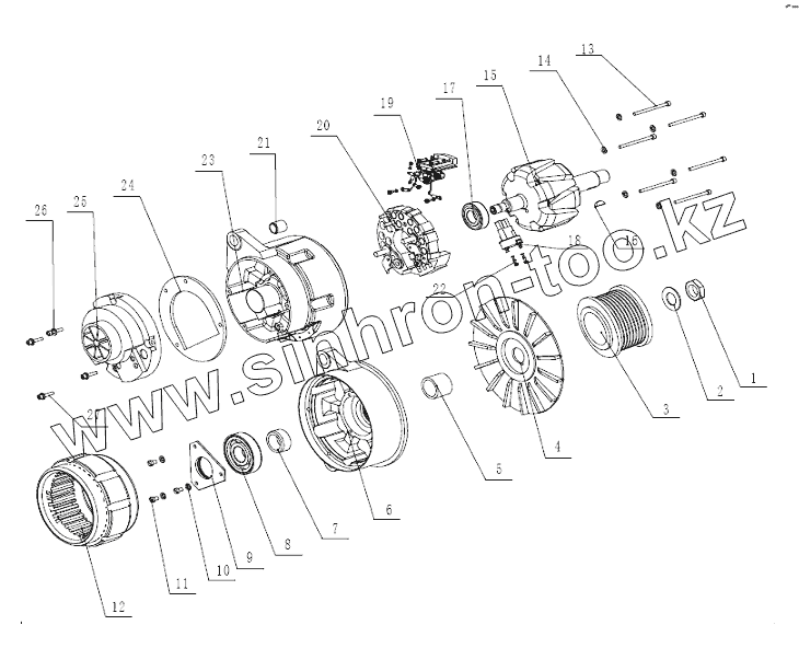 Каталог запасных частей к технике: King Long Автобус XMQ-6800Y. 279400380 AC172RA 363B ALTERNATOR ASSY