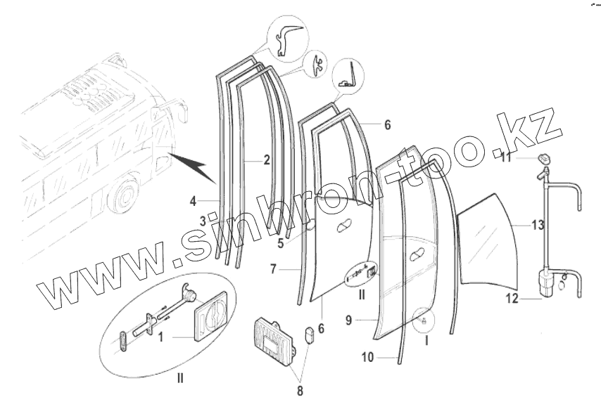 Каталог запасных частей к технике: King Long Автобус XMQ-6800Y. FRONT PASSENGER DOOR