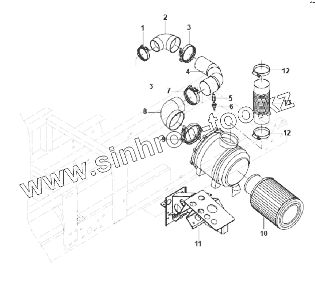 Каталог запасных частей к технике: King Long Автобус XMQ-6800Y. INTAKE SYSTEM