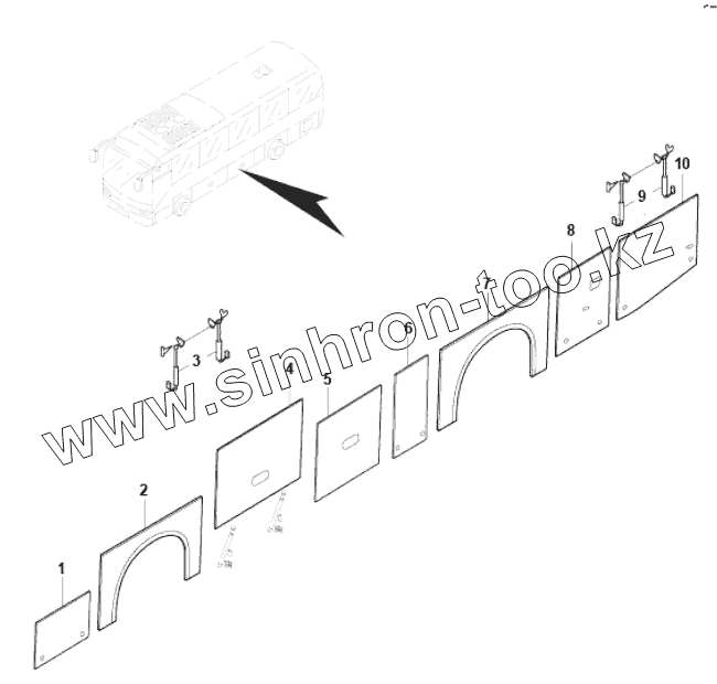 Каталог запасных частей к технике: King Long Автобус XMQ-6800Y. LEFT SIDE BIN GATE